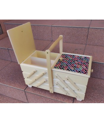Kuferek idealnie służy do przechowywania nici i innych wyrobów pasmanteryjnych, może także służyć do przechowywania biżuterii, kosmetyków i innych drobiazgów.